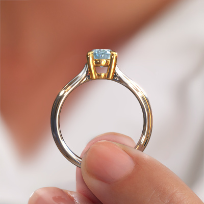 In your eyes, no one else compares to her. She is one in a million, unlike anyone else and pure? These qualities are emphasized perfectly by our contemporary white gold solitaire blue lab grown diamond ring. This blue lab grown diamond is carefully selected by our keen artisan goldsmiths. It equals the unique qualities of the love of your life. There is no better way to memorialize your proposal than this symbol of true love. The ring shown above is called the Antonia ovl 1, we call this a solitaire ring because it contains a single gemstone. The engagement ring is made in 14 Carat white gold and has a oval blue lab grown diamond of 8x6 mm. Each piece of jewellery is made with passion and love by one of our master goldsmiths.After receiving your order, our goldsmiths will start the creative process of making your Antonia ovl 1 engagement ring. We don't keep stock. This is advantageous because these costs will not be passed on to you. Therefore, we can offer jewellery at exceptionally low prices.Our team adds new designs to our online collection daily. Our designers and goldsmiths work together in creating the best design. We strive to offer a diverse collection of jewels. Perhaps you have a specific jewel design in mind. One you came across somewhere. Please contact us for a free consultation. We will make you an offer, based on a fair price/ quality ratio, that will baffle you.To make it easier for you, we offer a 30 day return policy. Check our terms and conditions.