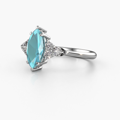 This platinum ring is called Melani MRQ and is set with 11x5.5 mm blue topaz. What is it that makes your relationship unique? What is it about her that makes you want to bend down on one knee? The unique bond between the two of you is emphasized by an equally unique ring. A one of a kind graceful cluster engagement ring made especially for her. That is why this trendy ring fits her like a glove. Each specific detail of this graceful platinum blue topaz set engagement ring is hand-picked, crafted and polished by our expert goldsmith. The result is an exquisite ring, unique and perfectly crafted to perfection. That is what our expert Goldsmiths strive for. This jewel is made just for you, with attention to detail and design.After receiving your order, our goldsmiths will passionately start the creative process of making your engagement ring in our own studio. Because we don't have a big stockpile, these costs will not be passed on to you. Our pricing is proof of that! We offer top quality jewels at lowest price, guaranteed.Do you have a specific ring in mind? One you came across somewhere. Please feel free to tell us your wishes and we will turn your design into a unique engagement ring. You can follow the development of your ring design because we use 3D drawings. This gives you a realistic preview of your design. We will gladly send you a non-binding offer, based on a fair price/ quality ratio. It will amaze you.To make it easier for you, we offer a 30 day return policy. Check our terms and conditions.