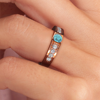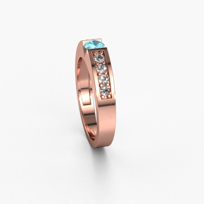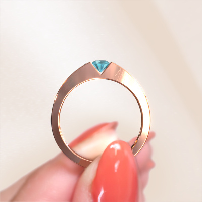 The ring shown above is called the Lizzy 2. We call this type of ring a pavé solitaire ring because it has one centre gemstone and a band that is also pave set with gemstones. This engagement ring is made in 14 Carat rose gold set with a 4.2 mm round blue topaz, and pave set diamonds at the sides. Each piece of jewellery is made to shine bright around your finger. Each jewel is hand made with love by our goldsmiths.This modern rose gold pavé solitaire engagement ring has an exquisite round blue topaz centre stone. To further accentuate the centre stone, the band is set full with more diamonds. Its open prong setting allows light to strike the blue topaz from various angles and this adds sparkle to your blue topaz ring. The photo shown above depicts the goldsmith's carefully handcrafted details of the ring. The high positioning of the centre stone is truly eye-catching. The perfect engagement ring for the crown jewel of your life!By using a combination of the latest modern techniques, combined with ancient crafting, we can make all our engagement rings in our own studio. Each jewel is made to order. This is advantageous because we can offer you a price you won't find anywhere else.Our team adds new designs to our online collection daily. Our designers and goldsmiths work together in creating the best design. We strive to offer a diverse collection of jewels. Perhaps you have a specific jewel design in mind. One you came across somewhere. Please contact us for a free consultation. We will make you an offer, based on a fair price/ quality ratio, that will baffle you.To make it easier for you, we offer a 30 day return policy. Check our terms and conditions.