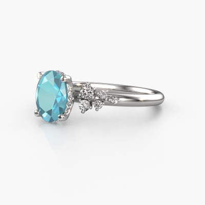 This 14 Carat white gold ring is called Emma OVL and is set with blue topaz. How would you describe the style of the love of your life? Does she have a unique sense of style? This stunning sublime white gold engagement ring can be custom-made to your own or her liking. Our blue topaz gemstones have been carefully selected because we believe your fantasy engagement ring must be adorned with nothing but the most beautiful gemstone. Don't you agree? This jewel is made by a team of passionate goldsmiths and jewel designers. This will make your crown jewel truly eye-catching.By using a combination of the latest modern techniques, combined with ancient crafting, we can make all our engagement rings in our own studio. Each jewel is made to order. This is advantageous because we can offer you a price you won't find anywhere else.Different styles of new rings are made daily by our team. Perhaps you have found a pavé solitaire engagement ring somewhere. One you would like to give to your loved one. Please feel free to share your thoughts and design with our jewel designers. We would love to turn your design into a fantasy engagement ring. You can follow the development of your ring design because we use very detailed 3D drawings. On top of that, you can order a dummy of the design. A dummy is a plastic ring, which can be shaped according your ring design. You can try it on and check if the engagement ring is up to standard. We will gladly send you a non-binding offer, based on a fair price/ quality ratio. The offer will baffle you, considering the quality of the ring and gemstones.To make it easier for you, we offer a 30 day return policy. Check our terms and conditions.