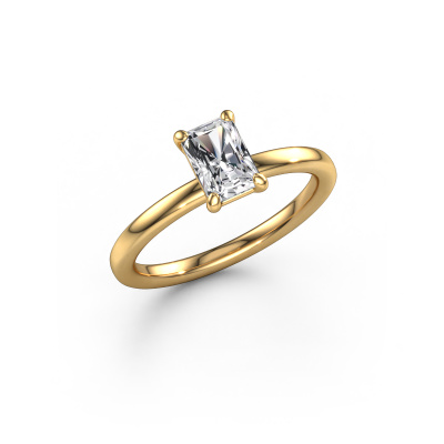 The ring shown above is called the Simone RAD 1. We call this a solitaire ring because it contains a single gemstone. The engagement ring is made in 14 Carat gold and has a radiant lab grown diamond of 0.75 crt. This extraordinary classic gold solitaire engagement ring is set with a beautiful radiant lab grown diamond to add sparkle to your proposal. The open prong setting allows light to strike the gemstone from various angles. Did you know a diamond represents everlasting love and fidelity? This makes it a perfect centrepiece. Our goldsmith carefully positions the gemstone of your choosing high on top of the ring, which makes it stand out. Each piece of jewellery is made to shine bright around your finger. Each jewel is hand made with love by our goldsmiths.Are you on a budget? Please feel free to contact us, so we can go discuss your options. We offer our engagement rings at guaranteed best price, because we make them to order. You won't find such a price anywhere else!Different styles of new rings are made daily by our team. Perhaps you have found a solitaire engagement ring somewhere. One you would like to give to your loved one. Please feel free to share your thoughts and design with our jewel designers. We would love to turn your design into a classic engagement ring. You can follow the development of your ring design because we use very detailed 3D drawings. On top of that, you can order a dummy of the design. A dummy is a plastic ring, which can be shaped according your ring design. You can try it on and check if the engagement ring is up to standard. We will gladly send you a non-binding offer, based on a fair price/ quality ratio. The offer will baffle you, considering the quality of the ring and gemstones.To make it easier for you, we offer a 30 day return policy. Check our terms and conditions.