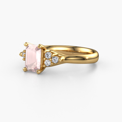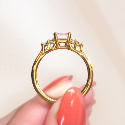 The ring shown above is called the Monika EME. We call this a solitaire ring because it contains a single gemstone. The engagement ring is made in 14 Carat gold and has a emerald cut morganite champagne of 7x5 mm. This extraordinary classic gold solitaire engagement ring is set with a beautiful emerald cut morganite champagne to add sparkle to your proposal. The open prong setting allows light to strike the gemstone from various angles. Did you know a diamond represents everlasting love and fidelity? This makes it a perfect centrepiece. Our goldsmith carefully positions the gemstone of your choosing high on top of the ring, which makes it stand out. Each piece of jewellery is made just for you by our master goldsmiths in our own studio.By using our modern techniques, we can design and customize the finest quality jewels with the utmost care for you. Our engagement rings are always priced 30 percent lower than other jewellers. We make engagement rings to order so we don't have to maintain a large stock. If you have a certain budget, we are more than happy to advice you accordingly.Our team adds new designs to our online collection daily. Our designers and goldsmiths work together in creating the best design. We strive to offer a diverse collection of jewels. Perhaps you have a specific jewel design in mind. One you came across somewhere. Please contact us for a free consultation. We will make you an offer, based on a fair price/ quality ratio, that will baffle you.To make it easier for you, we offer a 30 day return policy. Check our terms and conditions.
