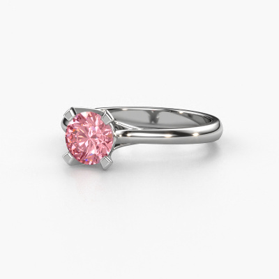 The ring shown above is called the Isa 1. We call this a solitaire ring because it contains a single gemstone. The engagement ring is made in platinum and has a round pink lab grown diamond of 5.7 mm. This extraordinary classic platinum solitaire engagement ring is set with a beautiful round pink lab grown diamond to add sparkle to your proposal. The open prong setting allows light to strike the gemstone from various angles. Did you know a diamond represents everlasting love and fidelity? This makes it a perfect centrepiece. Our goldsmith carefully positions the gemstone of your choosing high on top of the ring, which makes it stand out. Each piece of jewellery is made just for you by our master goldsmiths in our own studio.By using a combination of the latest modern techniques, combined with ancient crafting, we can make all our engagement rings in our own studio. Each jewel is made to order. This is advantageous because we can offer you a price you won't find anywhere else.Do you have a specific ring in mind? One you came across somewhere. Please feel free to tell us your wishes and we will turn your design into a unique engagement ring. You can follow the development of your ring design because we use 3D drawings. This gives you a realistic preview of your design. We will gladly send you a non-binding offer, based on a fair price/ quality ratio. It will amaze you.To make it easier for you, we offer a 30 day return policy. Check our terms and conditions.