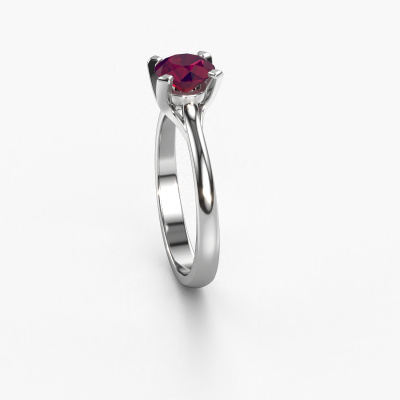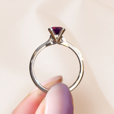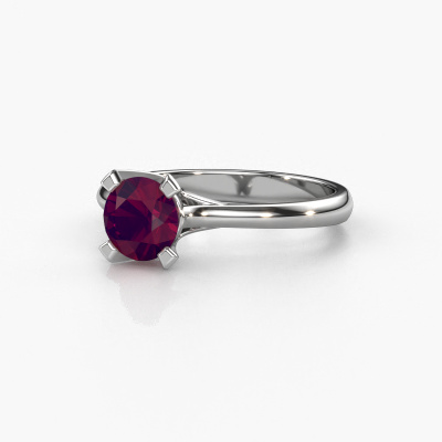 The ring shown above is called the Isa 1. We call this a solitaire ring because it contains a single gemstone. The engagement ring is made in platinum and has a round rhodolite of 5.7 mm. This extraordinary classic platinum solitaire engagement ring is set with a beautiful round rhodolite to add sparkle to your proposal. The open prong setting allows light to strike the gemstone from various angles. Did you know a diamond represents everlasting love and fidelity? This makes it a perfect centrepiece. Our goldsmith carefully positions the gemstone of your choosing high on top of the ring, which makes it stand out. Each piece of jewellery is made just for you by our master goldsmiths in our own studio.By using a combination of the latest modern techniques, combined with ancient crafting, we can make all our engagement rings in our own studio. Each jewel is made to order. This is advantageous because we can offer you a price you won't find anywhere else.Do you have a specific ring in mind? One you came across somewhere. Please feel free to tell us your wishes and we will turn your design into a unique engagement ring. You can follow the development of your ring design because we use 3D drawings. This gives you a realistic preview of your design. We will gladly send you a non-binding offer, based on a fair price/ quality ratio. It will amaze you.To make it easier for you, we offer a 30 day return policy. Check our terms and conditions.