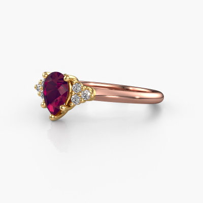 This 14 Carat rose gold ring is called Felipa PER and is set with 7x5 mm rhodolite. Are you looking for a classic rose gold engagement ring which you can customize to your own liking? This classic engagement ring is set with rhodolite which is carefully selected for this specific ring in order to create the best effect. Our expert goldsmith will create your ring in our own crafting studio, where the rhodolite will be set with great care. The ring will then be polished till it shines perfectly. Nothing but the best for the love of your life! The great thing about our online tool is, that you can compile your own jewellery into a unique, personalized piece. Each piece of jewellery is made with passion and love by one of our master goldsmiths.Are you on a budget? Please feel free to contact us, so we can go discuss your options. We offer our engagement rings at guaranteed best price, because we make them to order. You won't find such a price anywhere else!Have you found a specific engagement ring somewhere which you would like to give to your loved one? Please feel free to express your wishes to our jewel designers because we would be honoured to turn your design into a classic engagement ring. You can follow the development of your ring design because we use 3D drawings. This gives you a realistic preview of how your design will look. You can also preorder a dummy. A dummy is a plastic ring, which can be shaped according your ring design. You can try it on and check if its width and size are suitable for you. We will gladly send you a non-binding offer, based on a fair price/ quality ratio. It will amaze you, considering the quality of the ring and gemstones.To make it easier for you, we offer a 30 day return policy. Check our terms and conditions.
