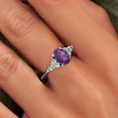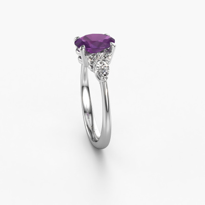 This platinum ring is called Melani OVL and is set with 8x6 mm amethyst. This exclusive platinum cluster engagement ring is a true work of art! The ornaments are crafted with a lot of patience and great passion. In order to create this ring with great precision, this craft requires a keen eye and skilful hand. A challenge which ignites a fire in our expert goldsmith. The exquisite amethysten are set in a special way so they stand out even more. This gives the ring an even more glamorous appearance. The stylish engagement ring is actually unique on its own because of the gemstones which we carefully select especially for this ring. On top of that you select the precious metals which will be used to create a unique ring for the most extraordinary woman in your life! This jewel is made by a team of passionate goldsmiths and jewel designers. This will make your crown jewel truly eye-catching.By using a combination of the latest modern techniques, combined with ancient crafting, we can make all our engagement rings in our own studio. Each jewel is made to order. This is advantageous because we can offer you a price you won't find anywhere else.Our designers and goldsmiths work together each day, creating new jewels. Perhaps you have found a nice fashionable engagement ring somewhere, which can be used to customize your unique ring. Please feel free to contact us. We will make you an offer, based on a fair price/ quality ratio, which will amaze you.To make it easier for you, we offer a 30 day return policy. Check our terms and conditions.
