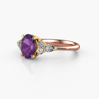 This 14 Carat rose gold ring is called Melani OVL and is set with 8x6 mm amethyst. This exclusive rose gold cluster engagement ring is a true work of art! The ornaments are crafted with a lot of patience and great passion. In order to create this ring with great precision, this craft requires a keen eye and skilful hand. A challenge which ignites a fire in our expert goldsmith. The exquisite amethysten are set in a special way so they stand out even more. This gives the ring an even more glamorous appearance. The stylish engagement ring is actually unique on its own because of the gemstones which we carefully select especially for this ring. On top of that you select the precious metals which will be used to create a unique ring for the most extraordinary woman in your life! This jewel is made by a team of passionate goldsmiths and jewel designers. This will make your crown jewel truly eye-catching.By using a combination of the latest modern techniques, combined with ancient crafting, we can make all our engagement rings in our own studio. Each jewel is made to order. This is advantageous because we can offer you a price you won't find anywhere else.Our designers and goldsmiths work together each day, creating new jewels. Perhaps you have found a nice fashionable engagement ring somewhere, which can be used to customize your unique ring. Please feel free to contact us. We will make you an offer, based on a fair price/ quality ratio, which will amaze you.To make it easier for you, we offer a 30 day return policy. Check our terms and conditions.