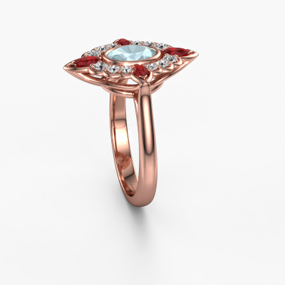 This 14 Carat rose gold ring is called Door and is set with 7x5 mm aquamarine. An extraordinary rose gold vintage ring. One that will surely make the love of your life shine like a diamond! That is what we hope to achieve. This vintage engagement ring is set with exquisite aquamarine. Whichever gemstone you choose from our selection, is up to you. The gemstone is selected with great care because we believe your daring engagement ring must be adorned with nothing but the most beautiful gemstone. Wouldn't you agree? Our expert goldsmith will design your ring in our own crafting studio, where the aquamarine will be set with great precision. The ring will then be polished till it shines perfectly. Nothing but the best for the love of your life! This jewel is made just for you by our master goldsmiths in our own studio.After receiving your order, our goldsmiths will passionately start the creative process of making your engagement ring in our own studio. Because we don't have a big stockpile, these costs will not be passed on to you. Our pricing is proof of that! We offer top quality jewels at lowest price, guaranteed.Our team adds new designs to our online collection daily. Our designers and goldsmiths work together in creating the best design. We strive to offer a diverse collection of jewels. Perhaps you have a specific jewel design in mind. One you came across somewhere. Please contact us for a free consultation. We will make you an offer, based on a fair price/ quality ratio, that will baffle you.To make it easier for you, we offer a 30 day return policy. Check our terms and conditions.