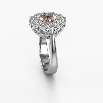 This platinum ring is called Kaat and is set with 0.680 crt brown diamond. Is your girlfriend hooked on vintage? Then this platinum pearl edges engagement ring will surely match her style perfectly. A trendy ring with just a hint of vintage adornment. A truly stunning, romantic design! Especially when you customize your ring to your own liking. This vintage cluster engagement ring is set with stunning brown diamonds. As you can see, you are the boss in selecting a gemstone which matches the style of your girlfriend best. Each gemstone is carefully selected by our merchants whom are spread throughout the world. Nothing but the best gems for our expert goldsmith. After all, it is his crowning glory! Each jewel is created to add sparkle to your finger, each jewel is lovingly made by hand by our goldsmiths.Because we design and deliver our own rings, we can offer you a engagement ring at a price you won't find anywhere else. A ring is made to order, which helps prevent excess supplies, so we can make you a great price offer. We understand it feels risky, buying your engagement ring online, but we will gladly assist in the designing process, taking your budget into consideration.Our team adds new designs to our online collection daily. Our designers and goldsmiths work together in creating the best design. We strive to offer a diverse collection of jewels. Perhaps you have a specific jewel design in mind. One you came across somewhere. Please contact us for a free consultation. We will make you an offer, based on a fair price/ quality ratio, that will baffle you.To make it easier for you, we offer a 30 day return policy. Check our terms and conditions.