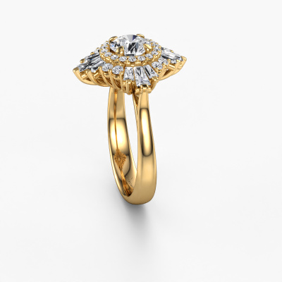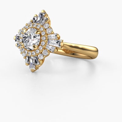 This 14 Carat gold ring is called Thalia and is set with 1.605 crt lab grown diamond. An extraordinary gold vintage ring. One that will surely make the love of your life shine like a diamond! That is what we hope to achieve. This vintage engagement ring is set with exquisite lab grown diamond. Whichever gemstone you choose from our selection, is up to you. The gemstone is selected with great care because we believe your special engagement ring must be adorned with nothing but the most beautiful gemstone. Wouldn't you agree? Our expert goldsmith will design your ring in our own crafting studio, where the lab grown diamond will be set with great precision. The ring will then be polished till it shines perfectly. Nothing but the best for the love of your life! This jewel is made with passion and love by one of our master goldsmiths.After receiving your order, our goldsmiths will passionately start the creative process of making your engagement ring in our own studio. Because we don't have a big stockpile, these costs will not be passed on to you. Our pricing is proof of that! We offer top quality jewels at lowest price, guaranteed.Have you found a specific engagement ring somewhere which you would like to give to your loved one? Please feel free to express your wishes to our jewel designers because we would be honoured to turn your design into a vintage engagement ring. You can follow the development of your ring design because we use 3D drawings. This gives you a realistic preview of how your design will look. You can also preorder a dummy. A dummy is a plastic ring, which can be shaped according your ring design. You can try it on and check if its width and size are suitable for you. We will gladly send you a non-binding offer, based on a fair price/ quality ratio. It will amaze you, considering the quality of the ring and gemstones.To make it easier for you, we offer a 30 day return policy. Check our terms and conditions.