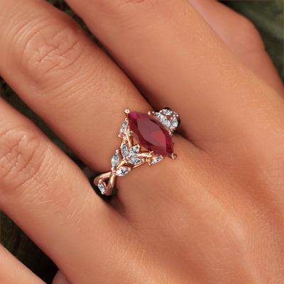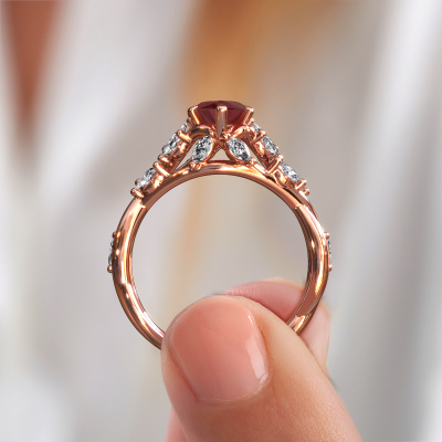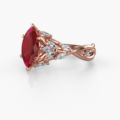This 14 Carat rose gold ring is called Samantha MRQ and is set with 11x5.5 mm ruby. This exclusive rose gold cluster engagement ring is a true work of art! The ornaments are crafted with a lot of patience and great passion. In order to create this ring with great precision, this craft requires a keen eye and skilful hand. A challenge which ignites a fire in our expert goldsmith. The exquisite ruby are set in a special way so they stand out even more. This gives the ring an even more glamorous appearance. The graceful engagement ring is actually unique on its own because of the gemstones which we carefully select especially for this ring. On top of that you select the precious metals which will be used to create a unique ring for the most extraordinary woman in your life! This jewel is created to add sparkle to your finger, each jewel is lovingly made by hand by our goldsmiths.By using a combination of the latest modern techniques, combined with ancient crafting, we can make all our engagement rings in our own studio. Each jewel is made to order. This is advantageous because we can offer you a price you won't find anywhere else.Our team adds new designs to our online collection daily. Our designers and goldsmiths work together in creating the best design. We strive to offer a diverse collection of jewels. Perhaps you have a specific jewel design in mind. One you came across somewhere. Please contact us for a free consultation. We will make you an offer, based on a fair price/ quality ratio, that will baffle you.To make it easier for you, we offer a 30 day return policy. Check our terms and conditions.