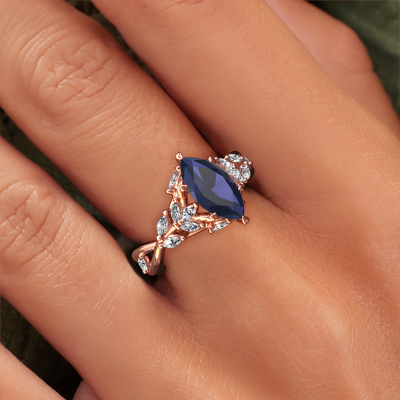 This 14 Carat rose gold ring is called Samantha MRQ and is set with 11x5.5 mm sapphire. This exclusive rose gold cluster engagement ring is a true work of art! The ornaments are crafted with a lot of patience and great passion. In order to create this ring with great precision, this craft requires a keen eye and skilful hand. A challenge which ignites a fire in our expert goldsmith. The exquisite sapphire are set in a special way so they stand out even more. This gives the ring an even more glamorous appearance. The graceful engagement ring is actually unique on its own because of the gemstones which we carefully select especially for this ring. On top of that you select the precious metals which will be used to create a unique ring for the most extraordinary woman in your life! This jewel is created to add sparkle to your finger, each jewel is lovingly made by hand by our goldsmiths.By using a combination of the latest modern techniques, combined with ancient crafting, we can make all our engagement rings in our own studio. Each jewel is made to order. This is advantageous because we can offer you a price you won't find anywhere else.Our team adds new designs to our online collection daily. Our designers and goldsmiths work together in creating the best design. We strive to offer a diverse collection of jewels. Perhaps you have a specific jewel design in mind. One you came across somewhere. Please contact us for a free consultation. We will make you an offer, based on a fair price/ quality ratio, that will baffle you.To make it easier for you, we offer a 30 day return policy. Check our terms and conditions.