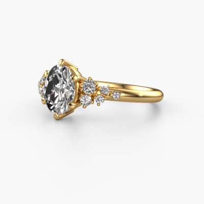 The ring shown above is called the Royce OVL. We call this type of ring a pavé solitaire ring because it has one centre gemstone and a band that is also pave set with gemstones. This engagement ring is made in 14 Carat gold set with a 8x6 mm oval zirconia, and pave set lab-grown diamonds at the sides. Each piece of jewellery is made with passion and love by one of our master goldsmiths.This fantasy gold pavé solitaire engagement ring has an exquisite oval zirconia centre stone. To further accentuate the centre stone, the band is set full with more lab-grown diamonds. Its open prong setting allows light to strike the zirconia from various angles and this adds sparkle to your zirconia ring. The photo shown above depicts the goldsmith's carefully handcrafted details of the ring. The high positioning of the centre stone is truly eye-catching. The perfect engagement ring for the crown jewel of your life!After receiving your order, our goldsmiths will passionately start the creative process of making your engagement ring in our own studio. Because we don't have a big stockpile, these costs will not be passed on to you. Our pricing is proof of that! We offer top quality jewels at lowest price, guaranteed.Have you found a specific engagement ring somewhere which you would like to give to your loved one? Please feel free to express your wishes to our jewel designers because we would be honoured to turn your design into a fantasy engagement ring. You can follow the development of your ring design because we use 3D drawings. This gives you a realistic preview of how your design will look. You can also preorder a dummy. A dummy is a plastic ring, which can be shaped according your ring design. You can try it on and check if its width and size are suitable for you. We will gladly send you a non-binding offer, based on a fair price/ quality ratio. It will amaze you, considering the quality of the ring and gemstones.To make it easier for you, we offer a 30 day return policy. Check our terms and conditions.