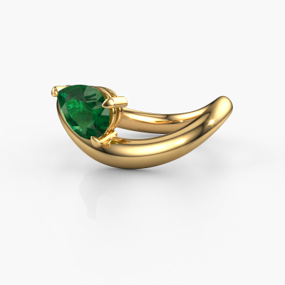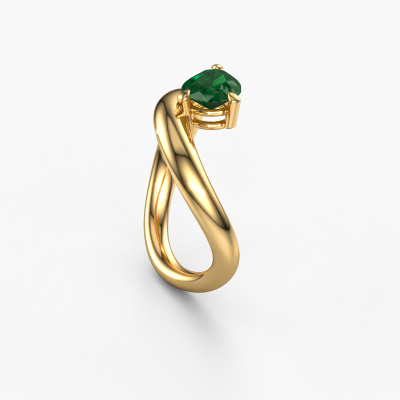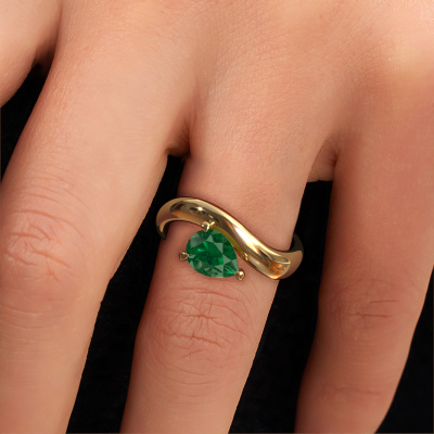 The ring shown above is called the Chloe PER. We call this a solitaire ring because it contains a single gemstone. The engagement ring is made in 14 Carat gold and has a pear emerald of 8x6 mm. This extraordinary design gold solitaire engagement