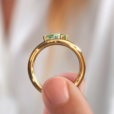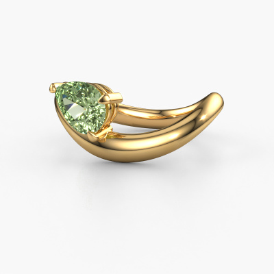 The ring shown above is called the Chloe PER. We call this a solitaire ring because it contains a single gemstone. The engagement ring is made in 14 Carat gold and has a pear green lab grown diamond of 8x6 mm. This extraordinary design gold solitaire engagement ring is set with a beautiful pear green lab grown diamond to add sparkle to your proposal. The open prong setting allows light to strike the gemstone from various angles. Did you know a diamond represents everlasting love and fidelity? This makes it a perfect centrepiece. Our goldsmith carefully positions the gemstone of your choosing high on top of the ring, which makes it stand out. Each piece of jewellery is created to add sparkle to your finger, each jewel is lovingly made by hand by our goldsmiths.Because we design and deliver our own rings, we can offer you a engagement ring at a price you won't find anywhere else. A ring is made to order, which helps prevent excess supplies, so we can make you a great price offer. We understand it feels risky, buying your engagement ring online, but we will gladly assist in the designing process, taking your budget into consideration.Our team adds new designs to our online collection daily. Our designers and goldsmiths work together in creating the best design. We strive to offer a diverse collection of jewels. Perhaps you have a specific jewel design in mind. One you came across somewhere. Please contact us for a free consultation. We will make you an offer, based on a fair price/ quality ratio, that will baffle you.To make it easier for you, we offer a 30 day return policy. Check our terms and conditions.