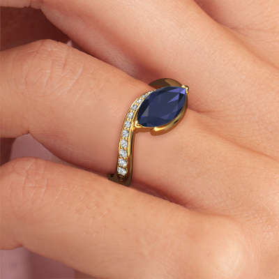 This 14 Carat gold ring is called Aida MRQ side and is set with 11x5.5 mm sapphire. Are you looking for a design gold engagement ring which you can customize to your own liking? This design engagement ring is set with sapphire which is carefully selected for this specific ring in order to create the best effect. Our expert goldsmith will create your ring in our own crafting studio, where the sapphire will be set with great care. The ring will then be polished till it shines perfectly. Nothing but the best for the love of your life! The great thing about our online tool is, that you can compile your own jewellery into a unique, personalized piece. Each piece of jewellery is made with passion and love by one of our master goldsmiths.Are you on a budget? Please feel free to contact us, so we can go discuss your options. We offer our engagement rings at guaranteed best price, because we make them to order. You won't find such a price anywhere else!Our team adds new designs to our online collection daily. Our designers and goldsmiths work together in creating the best design. We strive to offer a diverse collection of jewels. Perhaps you have a specific jewel design in mind. One you came across somewhere. Please contact us for a free consultation. We will make you an offer, based on a fair price/ quality ratio, that will baffle you.To make it easier for you, we offer a 30 day return policy. Check our terms and conditions.