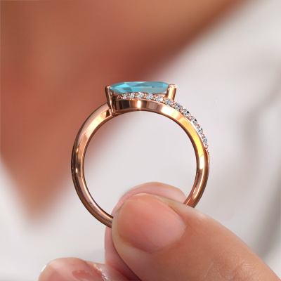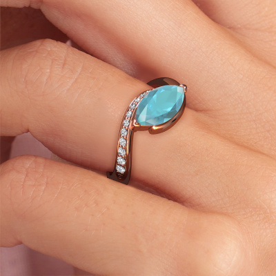 This 14 Carat rose gold ring is called Aida MRQ side and is set with 11x5.5 mm blue topaz. Are you looking for a design rose gold engagement ring which you can customize to your own liking? This design engagement ring is set with blue topaz which is carefully selected for this specific ring in order to create the best effect. Our expert goldsmith will create your ring in our own crafting studio, where the blue topaz will be set with great care. The ring will then be polished till it shines perfectly. Nothing but the best for the love of your life! The great thing about our online tool is, that you can compile your own jewellery into a unique, personalized piece. Each piece of jewellery is made with passion and love by one of our master goldsmiths.Are you on a budget? Please feel free to contact us, so we can go discuss your options. We offer our engagement rings at guaranteed best price, because we make them to order. You won't find such a price anywhere else!Our team adds new designs to our online collection daily. Our designers and goldsmiths work together in creating the best design. We strive to offer a diverse collection of jewels. Perhaps you have a specific jewel design in mind. One you came across somewhere. Please contact us for a free consultation. We will make you an offer, based on a fair price/ quality ratio, that will baffle you.To make it easier for you, we offer a 30 day return policy. Check our terms and conditions.