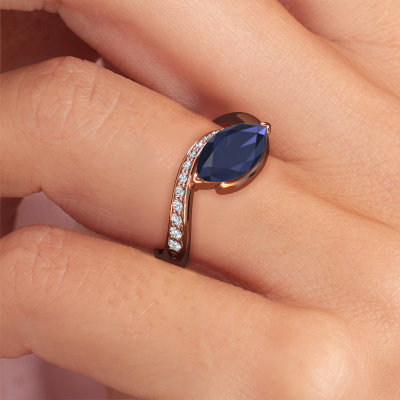 This 14 Carat rose gold ring is called Aida MRQ side and is set with 11x5.5 mm sapphire. Are you looking for a design rose gold engagement ring which you can customize to your own liking? This design engagement ring is set with sapphire which is carefully selected for this specific ring in order to create the best effect. Our expert goldsmith will create your ring in our own crafting studio, where the sapphire will be set with great care. The ring will then be polished till it shines perfectly. Nothing but the best for the love of your life! The great thing about our online tool is, that you can compile your own jewellery into a unique, personalized piece. Each piece of jewellery is made with passion and love by one of our master goldsmiths.Are you on a budget? Please feel free to contact us, so we can go discuss your options. We offer our engagement rings at guaranteed best price, because we make them to order. You won't find such a price anywhere else!Our team adds new designs to our online collection daily. Our designers and goldsmiths work together in creating the best design. We strive to offer a diverse collection of jewels. Perhaps you have a specific jewel design in mind. One you came across somewhere. Please contact us for a free consultation. We will make you an offer, based on a fair price/ quality ratio, that will baffle you.To make it easier for you, we offer a 30 day return policy. Check our terms and conditions.