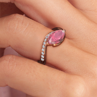 This 14 Carat rose gold ring is called Aida MRQ side and is set with 11x5.5 mm tourmaline pink. Are you looking for a design rose gold engagement ring which you can customize to your own liking? This design engagement ring is set with tourmaline pink which is carefully selected for this specific ring in order to create the best effect. Our expert goldsmith will create your ring in our own crafting studio, where the tourmaline pink will be set with great care. The ring will then be polished till it shines perfectly. Nothing but the best for the love of your life! The great thing about our online tool is, that you can compile your own jewellery into a unique, personalized piece. Each piece of jewellery is made with passion and love by one of our master goldsmiths.Are you on a budget? Please feel free to contact us, so we can go discuss your options. We offer our engagement rings at guaranteed best price, because we make them to order. You won't find such a price anywhere else!Our team adds new designs to our online collection daily. Our designers and goldsmiths work together in creating the best design. We strive to offer a diverse collection of jewels. Perhaps you have a specific jewel design in mind. One you came across somewhere. Please contact us for a free consultation. We will make you an offer, based on a fair price/ quality ratio, that will baffle you.To make it easier for you, we offer a 30 day return policy. Check our terms and conditions.