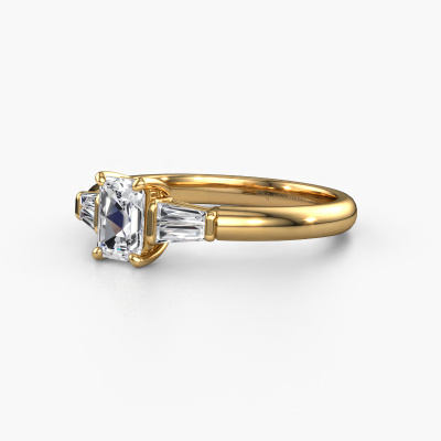 This 14 Carat gold ring is called Kina EME and is set with diamond. How would you describe the style of the love of your life? Does she have a unique sense of style? This stunning special gold engagement ring can be custom-made to your own or her liking. Our diamonds gemstones have been carefully selected because we believe your exclusive engagement ring must be adorned with nothing but the most beautiful gemstone. Don't you agree? This jewel is made by a team of passionate goldsmiths and jewel designers. This will make your crown jewel truly eye-catching.Are you on a budget? Please feel free to contact us, so we can go discuss your options. We offer our engagement rings at guaranteed best price, because we make them to order. You won't find such a price anywhere else!Have you found a specific engagement ring somewhere which you would like to give to your loved one? Please feel free to express your wishes to our jewel designers because we would be honoured to turn your design into a exclusive engagement ring. You can follow the development of your ring design because we use 3D drawings. This gives you a realistic preview of how your design will look. You can also preorder a dummy. A dummy is a plastic ring, which can be shaped according your ring design. You can try it on and check if its width and size are suitable for you. We will gladly send you a non-binding offer, based on a fair price/ quality ratio. It will amaze you, considering the quality of the ring and gemstones.To make it easier for you, we offer a 30 day return policy. Check our terms and conditions.