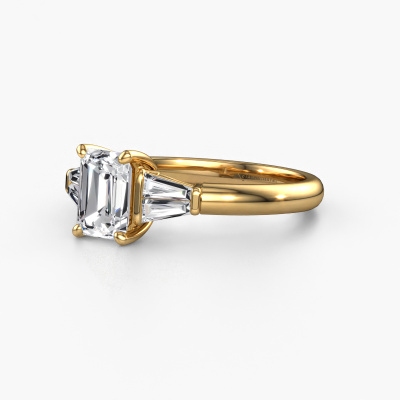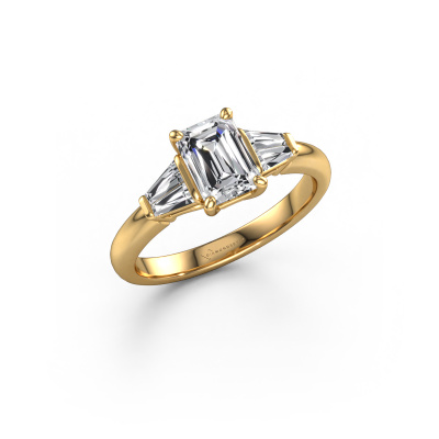This 14 Carat gold ring is called Kina EME and is set with diamond. How would you describe the style of the love of your life? Does she have a unique sense of style? This stunning special gold engagement ring can be custom-made to your own or her liking. Our diamonds gemstones have been carefully selected because we believe your exclusive engagement ring must be adorned with nothing but the most beautiful gemstone. Don't you agree? This jewel is made by a team of passionate goldsmiths and jewel designers. This will make your crown jewel truly eye-catching.Are you on a budget? Please feel free to contact us, so we can go discuss your options. We offer our engagement rings at guaranteed best price, because we make them to order. You won't find such a price anywhere else!Have you found a specific engagement ring somewhere which you would like to give to your loved one? Please feel free to express your wishes to our jewel designers because we would be honoured to turn your design into a exclusive engagement ring. You can follow the development of your ring design because we use 3D drawings. This gives you a realistic preview of how your design will look. You can also preorder a dummy. A dummy is a plastic ring, which can be shaped according your ring design. You can try it on and check if its width and size are suitable for you. We will gladly send you a non-binding offer, based on a fair price/ quality ratio. It will amaze you, considering the quality of the ring and gemstones.To make it easier for you, we offer a 30 day return policy. Check our terms and conditions.