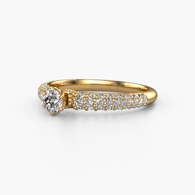 The ring shown above is called the Meryl. We call this type of ring a pavé solitaire ring because it has one centre gemstone and a band that is also pave set with gemstones. This engagement ring is made in 14 Carat gold set with a 0.25 crt round diamond, and pave set diamonds at the sides. Each piece of jewellery is made just for you, with attention to detail and design.This exclusive gold pavé solitaire engagement ring has an exquisite round diamond centre stone. To further accentuate the centre stone, the band is set full with more diamonds. Its open prong setting allows light to strike the diamond from various angles and this adds sparkle to your diamond ring. The photo shown above depicts the goldsmith's carefully handcrafted details of the ring. The high positioning of the centre stone is truly eye-catching. The perfect engagement ring for the crown jewel of your life!After receiving your order, our goldsmiths will passionately start the creative process of making your engagement ring in our own studio. Because we don't have a big stockpile, these costs will not be passed on to you. Our pricing is proof of that! We offer top quality jewels at lowest price, guaranteed.Have you found a specific engagement ring somewhere which you would like to give to your loved one? Please feel free to express your wishes to our jewel designers because we would be honoured to turn your design into a exclusive engagement ring. You can follow the development of your ring design because we use 3D drawings. This gives you a realistic preview of how your design will look. You can also preorder a dummy. A dummy is a plastic ring, which can be shaped according your ring design. You can try it on and check if its width and size are suitable for you. We will gladly send you a non-binding offer, based on a fair price/ quality ratio. It will amaze you, considering the quality of the ring and gemstones.To make it easier for you, we offer a 30 day return policy. Check our terms and conditions.