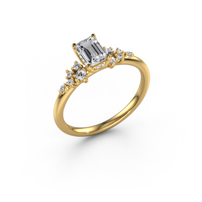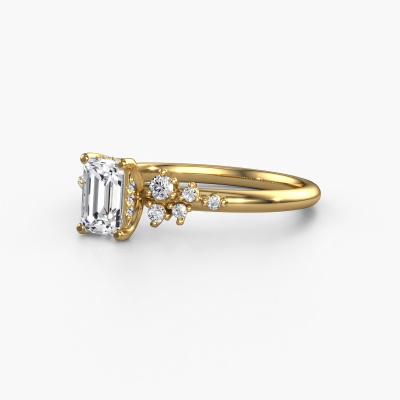 The ring shown above is called the Emma EME. We call this type of ring a pavé solitaire ring because it has one centre gemstone and a band that is also pave set with gemstones. This engagement ring is made in 14 Carat gold set with a 0.70 crt emerald cut diamond, and pave set lab-grown diamonds at the sides. Each piece of jewellery is made with passion and love by one of our master goldsmiths.This fantasy gold pavé solitaire engagement ring has an exquisite emerald cut diamond centre stone. To further accentuate the centre stone, the band is set full with more lab-grown diamonds. Its open prong setting allows light to strike the diamond from various angles and this adds sparkle to your diamond ring. The photo shown above depicts the goldsmith's carefully handcrafted details of the ring. The high positioning of the centre stone is truly eye-catching. The perfect engagement ring for the crown jewel of your life!After receiving your order, our goldsmiths will passionately start the creative process of making your engagement ring in our own studio. Because we don't have a big stockpile, these costs will not be passed on to you. Our pricing is proof of that! We offer top quality jewels at lowest price, guaranteed.Our team adds new designs to our online collection daily. Our designers and goldsmiths work together in creating the best design. We strive to offer a diverse collection of jewels. Perhaps you have a specific jewel design in mind. One you came across somewhere. Please contact us for a free consultation. We will make you an offer, based on a fair price/ quality ratio, that will baffle you.To make it easier for you, we offer a 30 day return policy. Check our terms and conditions.