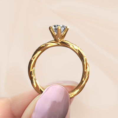 In your eyes, no one else compares to her. She is one in a million, unlike anyone else and pure? These qualities are emphasized perfectly by our fantasy gold solitaire diamond ring. This diamond is carefully selected by our keen artisan goldsmiths. It equals the unique qualities of the love of your life. There is no better way to memorialize your proposal than this symbol of true love. The ring shown above is called the Page, we call this a solitaire ring because it contains a single gemstone. The engagement ring is made in 14 Carat gold and has a round diamond of 0.70 crt. Each piece of jewellery is made with passion and love by one of our master goldsmiths.Are you on a budget? Please feel free to contact us, so we can go discuss your options. We offer our engagement rings at guaranteed best price, because we make them to order. You won't find such a price anywhere else!Do you have a specific ring in mind? One you came across somewhere. Please feel free to tell us your wishes and we will turn your design into a unique engagement ring. You can follow the development of your ring design because we use 3D drawings. This gives you a realistic preview of your design. We will gladly send you a non-binding offer, based on a fair price/ quality ratio. It will amaze you.To make it easier for you, we offer a 30 day return policy. Check our terms and conditions.
