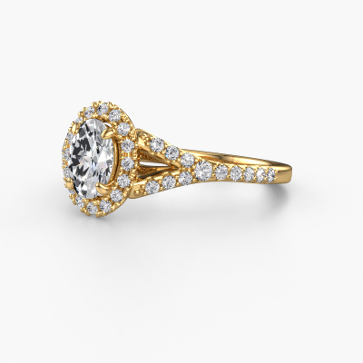 The ring shown above is called the Kimber OVL. We call this type of ring a pavé solitaire ring because it has one centre gemstone and a band that is also pave set with gemstones. The 14 Carat gold engagement ring is set with a oval 0.70 crt diamond centre stone and the band is pave set with lab grown diamond gemstones. Each jewel is made with passion and love by one of our master goldsmiths.This exclusive gold pavé solitaire engagement ring has an exquisite oval diamond centre stone. To further accentuate the centre stone, the band is fully set with more lab-grown diamonds. Its open prong setting allows light to strike the diamond from various angles and this adds sparkle to your diamond ring. The photo shown above depicts the goldsmith's carefully handcrafted details of the ring. The high positioning of the centre stone is truly eye-catching. The perfect engagement ring for the crown jewel of your life! By using a combination of the latest modern techniques, combined with ancient crafting, we can make all our engagement rings in our own studio. Each jewel is made to order. This is advantageous because we can offer you a price you won't find anywhere else.Our team adds new designs to our online collection daily. Our designers and goldsmiths work together in creating the best design. We strive to offer a diverse collection of jewels. Perhaps you have a specific jewel design in mind. One you came across somewhere. Please contact us for a free consultation. We will make you an offer, based on a fair price/ quality ratio, that will baffle you.To make it easier for you, we offer a 30 day return policy. Check our terms and conditions.