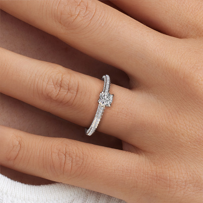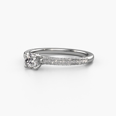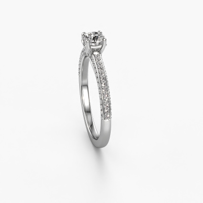 The ring shown above is called the Elenore rnd. We call this type of ring a pavé solitaire ring because it has one centre gemstone and a band that is also pave set with gemstones. This engagement ring is made in platinum set with a 0.30 crt round diamond, and pave set lab-grown diamonds at the sides. Each piece of jewellery is made just for you by our master goldsmiths in our own studio.This exclusive platinum pavé solitaire engagement ring has an exquisite round diamond centre stone. To further accentuate the centre stone, the band is set full with more lab-grown diamonds. Its open prong setting allows light to strike the diamond from various angles and this adds sparkle to your diamond ring. The photo shown above depicts the goldsmith's carefully handcrafted details of the ring. The high positioning of the centre stone is truly eye-catching. The perfect engagement ring for the crown jewel of your life!By using a combination of the latest modern techniques, combined with ancient crafting, we can make all our engagement rings in our own studio. Each jewel is made to order. This is advantageous because we can offer you a price you won't find anywhere else.Have you found a specific engagement ring somewhere which you would like to give to your loved one? Please feel free to express your wishes to our jewel designers because we would be honoured to turn your design into a exclusive engagement ring. You can follow the development of your ring design because we use 3D drawings. This gives you a realistic preview of how your design will look. You can also preorder a dummy. A dummy is a plastic ring, which can be shaped according your ring design. You can try it on and check if its width and size are suitable for you. We will gladly send you a non-binding offer, based on a fair price/ quality ratio. It will amaze you, considering the quality of the ring and gemstones.To make it easier for you, we offer a 30 day return policy. Check our terms and conditions.