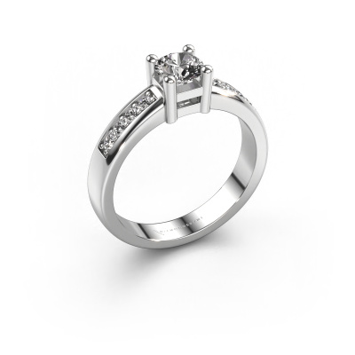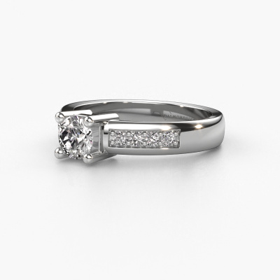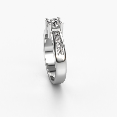 The ring shown above is called the Eline 2. We call this type of ring a pavé solitaire ring because it has one centre gemstone and a band that is also pave set with gemstones. The platinum engagement ring is set with a round 0.40 crt diamond centre stone and the band is pave set with diamond gemstones. Each jewel is unique in every way! Simply customize to your liking,This modern platinum pavé solitaire engagement ring has an exquisite round diamond centre stone. To further accentuate the centre stone, the band is fully set with more diamonds. Its open prong setting allows light to strike the diamond from various angles and this adds sparkle to your diamond ring. The photo shown above depicts the goldsmith's carefully handcrafted details of the ring. The high positioning of the centre stone is truly eye-catching. The perfect engagement ring for the crown jewel of your life! Because we design and deliver our own rings, we can offer you a engagement ring at a price you won't find anywhere else. A ring is made to order, which helps prevent excess supplies, so we can make you a great price offer. We understand it feels risky, buying your engagement ring online, but we will gladly assist in the designing process, taking your budget into consideration.Our team adds new designs to our online collection daily. Our designers and goldsmiths work together in creating the best design. We strive to offer a diverse collection of jewels. Perhaps you have a specific jewel design in mind. One you came across somewhere. Please contact us for a free consultation. We will make you an offer, based on a fair price/ quality ratio, that will baffle you.To make it easier for you, we offer a 30 day return policy. Check our terms and conditions.