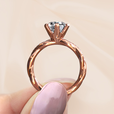 In your eyes, no one else compares to her. She is one in a million, unlike anyone else and pure? These qualities are emphasized perfectly by our fantasy rose gold solitaire diamond ring. This diamond is carefully selected by our keen artisan goldsmiths. It equals the unique qualities of the love of your life. There is no better way to memorialize your proposal than this symbol of true love. The ring shown above is called the Page, we call this a solitaire ring because it contains a single gemstone. The engagement ring is made in 14 Carat rose gold and has a round diamond of 2.00 crt. Each piece of jewellery is made with passion and love by one of our master goldsmiths.Are you on a budget? Please feel free to contact us, so we can go discuss your options. We offer our engagement rings at guaranteed best price, because we make them to order. You won't find such a price anywhere else!Do you have a specific ring in mind? One you came across somewhere. Please feel free to tell us your wishes and we will turn your design into a unique engagement ring. You can follow the development of your ring design because we use 3D drawings. This gives you a realistic preview of your design. We will gladly send you a non-binding offer, based on a fair price/ quality ratio. It will amaze you.To make it easier for you, we offer a 30 day return policy. Check our terms and conditions.