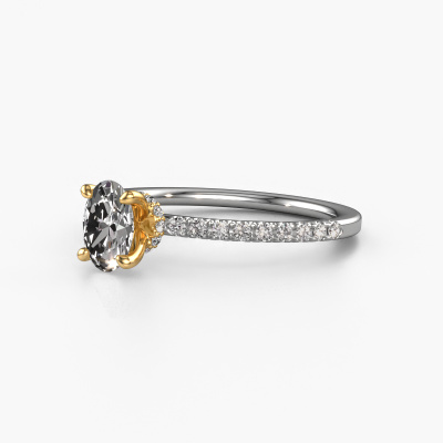 The ring shown above is called the Crystal OVL 4. We call this type of ring a pavé solitaire ring because it has one centre gemstone and a band that is also pave set with gemstones. The 14 Carat white gold engagement ring is set with a oval 0.60 crt diamond centre stone and the band is pave set with diamond gemstones. Each jewel is made with passion and love by one of our master goldsmiths.This contemporary white gold pavé solitaire engagement ring has an exquisite oval diamond centre stone. To further accentuate the centre stone, the band is fully set with more diamonds. Its open prong setting allows light to strike the diamond from various angles and this adds sparkle to your diamond ring. The photo shown above depicts the goldsmith's carefully handcrafted details of the ring. The high positioning of the centre stone is truly eye-catching. The perfect engagement ring for the crown jewel of your life! After receiving your order, our goldsmiths will passionately start the creative process of making your engagement ring in our own studio. Because we don't have a big stockpile, these costs will not be passed on to you. Our pricing is proof of that! We offer top quality jewels at lowest price, guaranteed.Our team adds new designs to our online collection daily. Our designers and goldsmiths work together in creating the best design. We strive to offer a diverse collection of jewels. Perhaps you have a specific jewel design in mind. One you came across somewhere. Please contact us for a free consultation. We will make you an offer, based on a fair price/ quality ratio, that will baffle you.To make it easier for you, we offer a 30 day return policy. Check our terms and conditions.