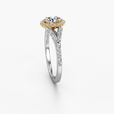 The ring shown above is called the Kimber OVL. We call this type of ring a pavé solitaire ring because it has one centre gemstone and a band that is also pave set with gemstones. The 14 Carat white gold engagement ring is set with a oval 0.40 crt diamond centre stone and the band is pave set with lab grown diamond gemstones. Each jewel is made with passion and love by one of our master goldsmiths.This exclusive white gold pavé solitaire engagement ring has an exquisite oval diamond centre stone. To further accentuate the centre stone, the band is fully set with more lab-grown diamonds. Its open prong setting allows light to strike the diamond from various angles and this adds sparkle to your diamond ring. The photo shown above depicts the goldsmith's carefully handcrafted details of the ring. The high positioning of the centre stone is truly eye-catching. The perfect engagement ring for the crown jewel of your life! By using a combination of the latest modern techniques, combined with ancient crafting, we can make all our engagement rings in our own studio. Each jewel is made to order. This is advantageous because we can offer you a price you won't find anywhere else.Our team adds new designs to our online collection daily. Our designers and goldsmiths work together in creating the best design. We strive to offer a diverse collection of jewels. Perhaps you have a specific jewel design in mind. One you came across somewhere. Please contact us for a free consultation. We will make you an offer, based on a fair price/ quality ratio, that will baffle you.To make it easier for you, we offer a 30 day return policy. Check our terms and conditions.