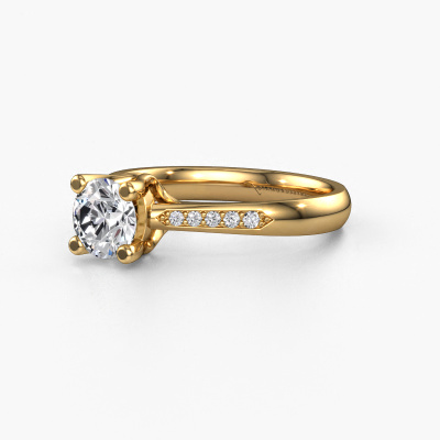 The ring shown above is called the Janna 2. We call this type of ring a pavé solitaire ring because it has one centre gemstone and a band that is also pave set with gemstones. This promise ring is made in 14 Carat gold set with a 0.70 crt round diamond, and pave set diamonds at the sides. Each piece of jewellery is made just for you by our master goldsmiths in our own studio.This classic gold pavé solitaire promise ring has an exquisite round diamond centre stone. To further accentuate the centre stone, the band is set full with more diamonds. Its open prong setting allows light to strike the diamond from various angles and this adds sparkle to your diamond ring. The photo shown above depicts the goldsmith's carefully handcrafted details of the ring. The high positioning of the centre stone is truly eye-catching. The perfect promise ring for the crown jewel of your life!By using a combination of the latest modern techniques, combined with ancient crafting, we can make all our promise ring in our own studio. Each jewel is made to order. This is advantageous because we can offer you a price you won't find anywhere else.Do you have a specific ring in mind? One you came across somewhere. Please feel free to tell us your wishes and we will turn your design into a unique promise ring. You can follow the development of your ring design because we use 3D drawings. This gives you a realistic preview of your design. We will gladly send you a non-binding offer, based on a fair price/ quality ratio. It will amaze you.To make it easier for you, we offer a 30 day return policy. Check our terms and conditions.