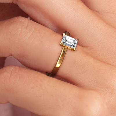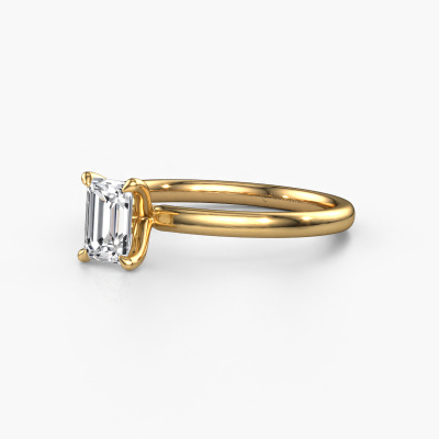 The ring shown above is called the Crystal EME 1, we call this a solitaire ring because it contains a single gemstone. The engagement ring is made in 14 Carat gold and has a emerald cut diamond of 0.70 crt. The cool thing about our configurator is that you can compile your own piece of jewellery, into a completely personalized one. This solitaire ring is crafted in the precious metals gold with gold, but of course you are free to pick your own colours. Each piece of jewellery is made with passion and love by one of our master goldsmiths.The solitaire ring is a special type of engagement ring. Its open prong setting allows light to strike the gemstone from various angles. This classic engagement ring is a stunning eye-catcher because of the high positioning of the gemstone. In order for you to commemorate your proposal with a unique ring, we carefully adorn this solitaire ring by hand. The love of your life deserves nothing but the best. After receiving your order, our goldsmiths will passionately start the creative process of making your engagement ring in our own studio. Because we don't have a big stockpile, these costs will not be passed on to you. Our pricing is proof of that! We offer top quality jewels at lowest price, guaranteed.Our designers and goldsmiths work together each day, creating new jewels. Perhaps you have found a nice classic engagement ring somewhere, which can be used to customize your unique ring. Please feel free to contact us. We will make you an offer, based on a fair price/ quality ratio, which will amaze you.To make it easier for you, we offer a 30 day return policy. Check our terms and conditions.