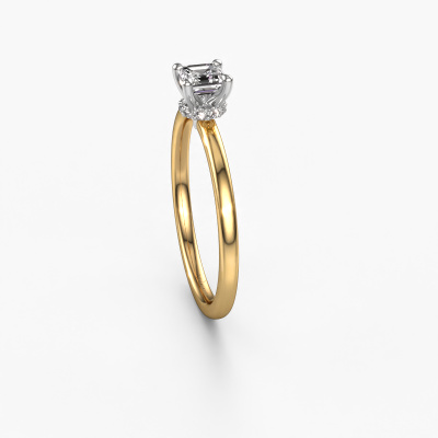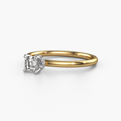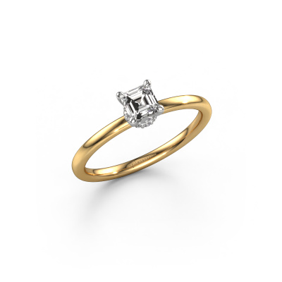 The ring shown above is called the Crystal ASSC 3, we call this a solitaire ring because it contains a single gemstone. The engagement ring is made in 14 Carat gold and has a asscher diamond of 0.35 crt. The cool thing about our configurator is that you can compile your own piece of jewellery, into a completely personalized one. This solitaire ring is crafted in the precious metals gold with white gold, but of course you are free to pick your own colours. Each piece of jewellery is created to add sparkle to your finger, each jewel is lovingly made by hand by our goldsmiths.The solitaire ring is a special type of engagement ring. Its open prong setting allows light to strike the gemstone from various angles. This exclusive engagement ring is a stunning eye-catcher because of the high positioning of the gemstone. In order for you to commemorate your proposal with a unique ring, we carefully adorn this solitaire ring by hand. The love of your life deserves nothing but the best. By using our modern techniques, we can design and customize the finest quality jewels with the utmost care for you. Our engagement rings are always priced 30 percent lower than other jewellers. We make engagement rings to order so we don't have to maintain a large stock. If you have a certain budget, we are more than happy to advice you accordingly.Do you have a specific ring in mind? One you came across somewhere. Please feel free to tell us your wishes and we will turn your design into a unique engagement ring. You can follow the development of your ring design because we use 3D drawings. This gives you a realistic preview of your design. We will gladly send you a non-binding offer, based on a fair price/ quality ratio. It will amaze you.To make it easier for you, we offer a 30 day return policy. Check our terms and conditions.