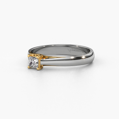 The ring shown above is called the Mia Square, we call this a solitaire ring because it contains a single gemstone. The engagement ring is made in 14 Carat white gold and has a princess diamond of 0.17 crt. The cool thing about our configurator is that you can compile your own piece of jewellery, into a completely personalized one. This solitaire ring is crafted in the precious metals white gold with gold, but of course you are free to pick your own colours. Each piece of jewellery is made by a team of passionate goldsmiths and jewel designers. This will make your crown jewel truly eye-catching.The solitaire ring is a special type of engagement ring. Its open prong setting allows light to strike the gemstone from various angles. This modern engagement ring is a stunning eye-catcher because of the high positioning of the gemstone. In order for you to commemorate your proposal with a unique ring, we carefully adorn this solitaire ring by hand. The love of your life deserves nothing but the best. By using our modern techniques, we can design and customize the finest quality jewels with the utmost care for you. Our engagement rings are always priced 30 percent lower than other jewellers. We make engagement rings to order so we don't have to maintain a large stock. If you have a certain budget, we are more than happy to advice you accordingly.Have you found a specific engagement ring somewhere which you would like to give to your loved one? Please feel free to express your wishes to our jewel designers because we would be honoured to turn your design into a modern engagement ring. You can follow the development of your ring design because we use 3D drawings. This gives you a realistic preview of how your design will look. You can also preorder a dummy. A dummy is a plastic ring, which can be shaped according your ring design. You can try it on and check if its width and size are suitable for you. We will gladly send you a non-binding offer, based on a fair price/ quality ratio. It will amaze you, considering the quality of the ring and gemstones.To make it easier for you, we offer a 30 day return policy. Check our terms and conditions.