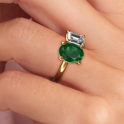 This 14 Carat gold ring is called Toi et Moi OVL-EME and is set with 9x7 mm emerald. What is it that makes your relationship unique? What is it about her that makes you want to bend down on one knee? The unique bond between the two of you is emphasized by an equally unique ring. A one of a kind charming 2 stone engagement ring made especially for her. That is why this exclusive ring fits her like a glove. Each specific detail of this charming gold emerald set engagement ring is hand-picked, crafted and polished by our expert goldsmith. The result is an exquisite ring, unique and perfectly crafted to perfection. That is what our expert Goldsmiths strive for. This jewel is made just for you, with attention to detail and design.After receiving your order, our goldsmiths will start the creative process of making your Toi et Moi OVL-EME engagement ring. We don't keep stock. This is advantageous because these costs will not be passed on to you. Therefore, we can offer jewellery at exceptionally low prices.Our team adds new designs to our online collection daily. Our designers and goldsmiths work together in creating the best design. We strive to offer a diverse collection of jewels. Perhaps you have a specific jewel design in mind. One you came across somewhere. Please contact us for a free consultation. We will make you an offer, based on a fair price/ quality ratio, that will baffle you.To make it easier for you, we offer a 30 day return policy. Check our terms and conditions.