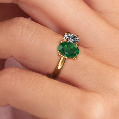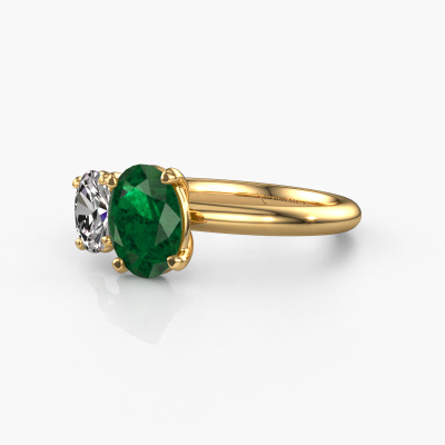 This 14 Carat gold ring is called Toi et Moi OVL-OVL and is set with emerald. How would you describe the style of the love of your life? Does she have a unique sense of style? This stunning sublime gold engagement ring can be custom-made to your own or her liking. Our emerald gemstones have been carefully selected because we believe your modern engagement ring must be adorned with nothing but the most beautiful gemstone. Don't you agree? This jewel is made by a team of passionate goldsmiths and jewel designers. This will make your crown jewel truly eye-catching.After receiving your order, our goldsmiths will start the creative process of making your Toi et Moi OVL-OVL engagement ring. We don't keep stock. This is advantageous because these costs will not be passed on to you. Therefore, we can offer jewellery at exceptionally low prices.Different styles of new rings are made daily by our team. Perhaps you have found a 2 stone engagement ring somewhere. One you would like to give to your loved one. Please feel free to share your thoughts and design with our jewel designers. We would love to turn your design into a modern engagement ring. You can follow the development of your ring design because we use very detailed 3D drawings. On top of that, you can order a dummy of the design. A dummy is a plastic ring, which can be shaped according your ring design. You can try it on and check if the engagement ring is up to standard. We will gladly send you a non-binding offer, based on a fair price/ quality ratio. The offer will baffle you, considering the quality of the ring and gemstones.To make it easier for you, we offer a 30 day return policy. Check our terms and conditions.