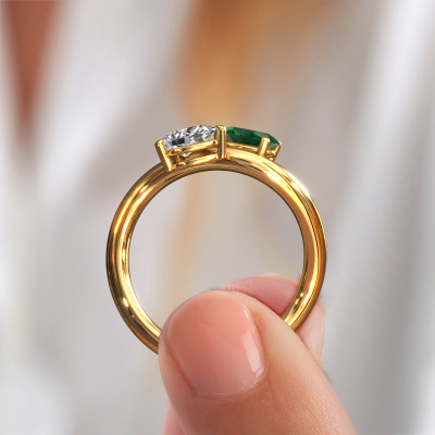 This 14 Carat gold ring is called Chloe OVL-PER and is set with emerald. How would you describe the style of the love of your life? Does she have a unique sense of style? This stunning twist gold engagement ring can be custom-made to your own or her liking. Our emerald gemstones have been carefully selected because we believe your unique engagement ring must be adorned with nothing but the most beautiful gemstone. Don't you agree? This jewel is created to add sparkle to your finger, each jewel is lovingly made by hand by our goldsmiths.Because we design and deliver our own rings, we can offer you a engagement ring at a price you won't find anywhere else. A ring is made to order, which helps prevent excess supplies, so we can make you a great price offer. We understand it feels risky, buying your engagement ring online, but we will gladly assist in the designing process, taking your budget into consideration.Do you have a specific ring in mind? One you came across somewhere. Please feel free to tell us your wishes and we will turn your design into a unique engagement ring. You can follow the development of your ring design because we use 3D drawings. This gives you a realistic preview of your design. We will gladly send you a non-binding offer, based on a fair price/ quality ratio. It will amaze you.To make it easier for you, we offer a 30 day return policy. Check our terms and conditions.