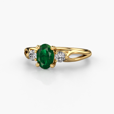 This 14 Carat gold ring is called Amie OVL and is set with 7x5 mm emerald. What is it that makes your relationship unique? What is it about her that makes you want to bend down on one knee? The unique bond between the two of you is emphasized by an equally unique ring. A one of a kind stylish 3-stone engagement ring made especially for her. That is why this fantasy ring fits her like a glove. Each specific detail of this stylish gold emerald set engagement ring is hand-picked, crafted and polished by our expert goldsmith. The result is an exquisite ring, unique and perfectly crafted to perfection. That is what our expert Goldsmiths strive for. This jewel is made to shine bright around your finger. Each jewel is hand made with love by our goldsmiths.By using our modern techniques, we can design and customize the finest quality jewels with the utmost care for you. Our engagement rings are always priced 30 percent lower than other jewellers. We make engagement rings to order so we don't have to maintain a large stock. If you have a certain budget, we are more than happy to advice you accordingly.Do you have a specific ring in mind? One you came across somewhere. Please feel free to tell us your wishes and we will turn your design into a unique engagement ring. You can follow the development of your ring design because we use 3D drawings. This gives you a realistic preview of your design. We will gladly send you a non-binding offer, based on a fair price/ quality ratio. It will amaze you.To make it easier for you, we offer a 30 day return policy. Check our terms and conditions.