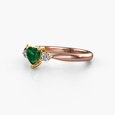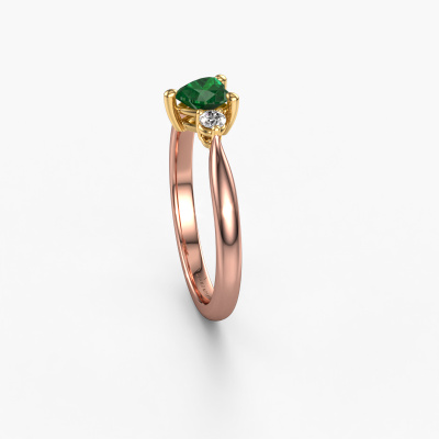 This 14 Carat rose gold ring is called Lieselot HRT and is set with emerald. How would you describe the style of the love of your life? Does she have a unique sense of style? This stunning graceful rose gold engagement ring can be custom-made to your own or her liking. Our emerald gemstones have been carefully selected because we believe your fantasy engagement ring must be adorned with nothing but the most beautiful gemstone. Don't you agree? This jewel is made just for you, with attention to detail and design.After receiving your order, our goldsmiths will start the creative process of making your Lieselot HRT engagement ring. We don't keep stock. This is advantageous because these costs will not be passed on to you. Therefore, we can offer jewellery at exceptionally low prices.Our designers and goldsmiths work together each day, creating new jewels. Perhaps you have found a nice fantasy engagement ring somewhere, which can be used to customize your unique ring. Please feel free to contact us. We will make you an offer, based on a fair price/ quality ratio, which will amaze you.To make it easier for you, we offer a 30 day return policy. Check our terms and conditions.
