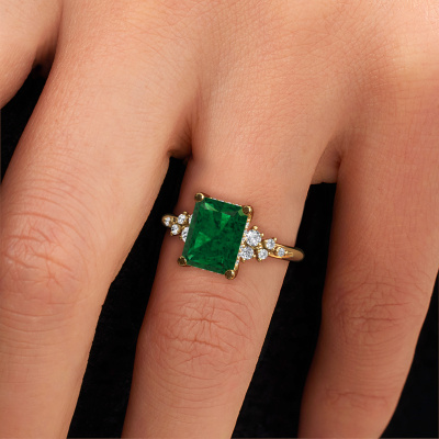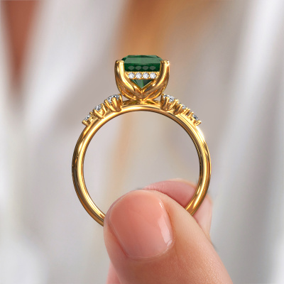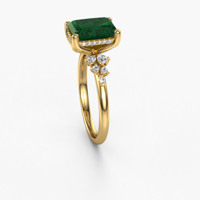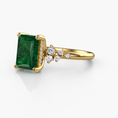 This 14 Carat gold ring is called Emma RAD and is set with 9x7 mm emerald. What is it that makes your relationship unique? What is it about her that makes you want to bend down on one knee? The unique bond between the two of you is emphasized by an equally unique ring. A one of a kind stylish pavé solitaire engagement ring made especially for her. That is why this exclusive ring fits her like a glove. Each specific detail of this stylish gold emerald set engagement ring is hand-picked, crafted and polished by our expert goldsmith. The result is an exquisite ring, unique and perfectly crafted to perfection. That is what our expert Goldsmiths strive for. This jewel is made by a team of passionate goldsmiths and jewel designers. This will make your crown jewel truly eye-catching.Because we design and deliver our own rings, we can offer you a engagement ring at a price you won't find anywhere else. A ring is made to order, which helps prevent excess supplies, so we can make you a great price offer. We understand it feels risky, buying your engagement ring online, but we will gladly assist in the designing process, taking your budget into consideration.Our designers and goldsmiths work together each day, creating new jewels. Perhaps you have found a nice exclusive engagement ring somewhere, which can be used to customize your unique ring. Please feel free to contact us. We will make you an offer, based on a fair price/ quality ratio, which will amaze you.To make it easier for you, we offer a 30 day return policy. Check our terms and conditions.