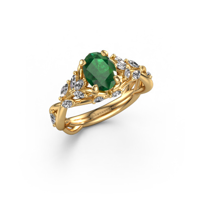 This 14 Carat gold ring is called Samantha OVL and is set with 7,5x5,5 mm emerald. What is it that makes your relationship unique? What is it about her that makes you want to bend down on one knee? The unique bond between the two of you is emphasized by an equally unique ring. A one of a kind special pavé solitaire engagement ring made especially for her. That is why this unique ring fits her like a glove. Each specific detail of this special gold emerald set engagement ring is hand-picked, crafted and polished by our expert goldsmith. The result is an exquisite ring, unique and perfectly crafted to perfection. That is what our expert Goldsmiths strive for. This jewel is made just for you by our master goldsmiths in our own studio.After receiving your order, our goldsmiths will passionately start the creative process of making your engagement ring in our own studio. Because we don't have a big stockpile, these costs will not be passed on to you. Our pricing is proof of that! We offer top quality jewels at lowest price, guaranteed.Our team adds new designs to our online collection daily. Our designers and goldsmiths work together in creating the best design. We strive to offer a diverse collection of jewels. Perhaps you have a specific jewel design in mind. One you came across somewhere. Please contact us for a free consultation. We will make you an offer, based on a fair price/ quality ratio, that will baffle you.To make it easier for you, we offer a 30 day return policy. Check our terms and conditions.