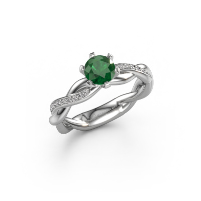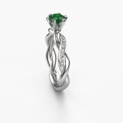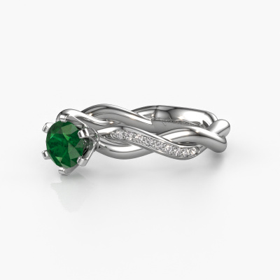 In your eyes, no one else compares to her. She is one in a million, unlike anyone else and pure? These qualities are emphasized perfectly by our fantasy platinum solitaire emerald ring. This emerald is carefully selected by our keen artisan goldsmiths. It equals the unique qualities of the love of your life. There is no better way to memorialize your proposal than this symbol of true love. The ring shown above is called the Page, we call this a solitaire ring because it contains a single gemstone. The engagement ring is made in platinum and has a round emerald of 5.4 mm. Each piece of jewellery is made with passion and love by one of our master goldsmiths.Are you on a budget? Please feel free to contact us, so we can go discuss your options. We offer our engagement rings at guaranteed best price, because we make them to order. You won't find such a price anywhere else!Do you have a specific ring in mind? One you came across somewhere. Please feel free to tell us your wishes and we will turn your design into a unique engagement ring. You can follow the development of your ring design because we use 3D drawings. This gives you a realistic preview of your design. We will gladly send you a non-binding offer, based on a fair price/ quality ratio. It will amaze you.To make it easier for you, we offer a 30 day return policy. Check our terms and conditions.