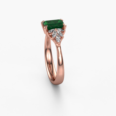This 14 Carat rose gold ring is called Fiona EME and is set with 7x5 mm emerald. What is it that makes your relationship unique? What is it about her that makes you want to bend down on one knee? The unique bond between the two of you is emphasized by an equally unique ring. A one of a kind special pavé solitaire engagement ring made especially for her. That is why this vintage ring fits her like a glove. Each specific detail of this special rose gold emerald set engagement ring is hand-picked, crafted and polished by our expert goldsmith. The result is an exquisite ring, unique and perfectly crafted to perfection. That is what our expert Goldsmiths strive for. This jewel is created to add sparkle to your finger, each jewel is lovingly made by hand by our goldsmiths.Because we design and deliver our own rings, we can offer you a engagement ring at a price you won't find anywhere else. A ring is made to order, which helps prevent excess supplies, so we can make you a great price offer. We understand it feels risky, buying your engagement ring online, but we will gladly assist in the designing process, taking your budget into consideration.Our team adds new designs to our online collection daily. Our designers and goldsmiths work together in creating the best design. We strive to offer a diverse collection of jewels. Perhaps you have a specific jewel design in mind. One you came across somewhere. Please contact us for a free consultation. We will make you an offer, based on a fair price/ quality ratio, that will baffle you.To make it easier for you, we offer a 30 day return policy. Check our terms and conditions.