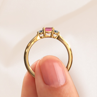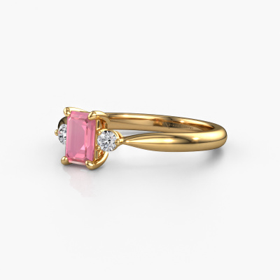 This 14 Carat gold ring is called Lieselot EME and is set with 6x4 mm tourmaline pink. Are you looking for a exclusive gold engagement ring which you can customize to your own liking? This exclusive engagement ring is set with tourmaline pink which is carefully selected for this specific ring in order to create the best effect. Our expert goldsmith will create your ring in our own crafting studio, where the tourmaline pink will be set with great care. The ring will then be polished till it shines perfectly. Nothing but the best for the love of your life! The great thing about our online tool is, that you can compile your own jewellery into a unique, personalized piece. Each piece of jewellery is made just for you, with attention to detail and design.After receiving your order, our goldsmiths will start the creative process of making your Lieselot EME engagement ring. We don't keep stock. This is advantageous because these costs will not be passed on to you. Therefore, we can offer jewellery at exceptionally low prices.Different styles of new rings are made daily by our team. Perhaps you have found a 3-stone engagement ring somewhere. One you would like to give to your loved one. Please feel free to share your thoughts and design with our jewel designers. We would love to turn your design into a exclusive engagement ring. You can follow the development of your ring design because we use very detailed 3D drawings. On top of that, you can order a dummy of the design. A dummy is a plastic ring, which can be shaped according your ring design. You can try it on and check if the engagement ring is up to standard. We will gladly send you a non-binding offer, based on a fair price/ quality ratio. The offer will baffle you, considering the quality of the ring and gemstones.To make it easier for you, we offer a 30 day return policy. Check our terms and conditions.