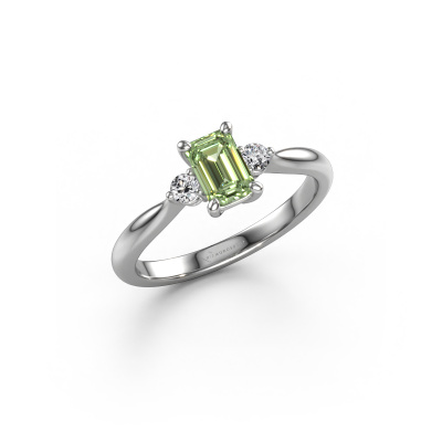 This platinum ring is called Lieselot EME and is set with 6x4 mm green lab grown diamond. Are you looking for a exclusive platinum engagement ring which you can customize to your own liking? This exclusive engagement ring is set with green lab grown diamond which is carefully selected for this specific ring in order to create the best effect. Our expert goldsmith will create your ring in our own crafting studio, where the green lab grown diamond will be set with great care. The ring will then be polished till it shines perfectly. Nothing but the best for the love of your life! The great thing about our online tool is, that you can compile your own jewellery into a unique, personalized piece. Each piece of jewellery is made just for you, with attention to detail and design.After receiving your order, our goldsmiths will start the creative process of making your Lieselot EME engagement ring. We don't keep stock. This is advantageous because these costs will not be passed on to you. Therefore, we can offer jewellery at exceptionally low prices.Different styles of new rings are made daily by our team. Perhaps you have found a 3-stone engagement ring somewhere. One you would like to give to your loved one. Please feel free to share your thoughts and design with our jewel designers. We would love to turn your design into a exclusive engagement ring. You can follow the development of your ring design because we use very detailed 3D drawings. On top of that, you can order a dummy of the design. A dummy is a plastic ring, which can be shaped according your ring design. You can try it on and check if the engagement ring is up to standard. We will gladly send you a non-binding offer, based on a fair price/ quality ratio. The offer will baffle you, considering the quality of the ring and gemstones.To make it easier for you, we offer a 30 day return policy. Check our terms and conditions.