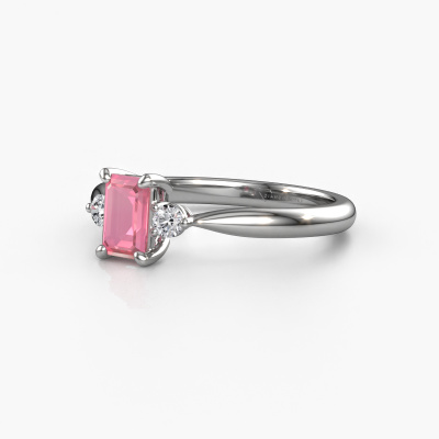 This platinum ring is called Lieselot EME and is set with 6x4 mm tourmaline pink. Are you looking for a exclusive platinum engagement ring which you can customize to your own liking? This exclusive engagement ring is set with tourmaline pink which is carefully selected for this specific ring in order to create the best effect. Our expert goldsmith will create your ring in our own crafting studio, where the tourmaline pink will be set with great care. The ring will then be polished till it shines perfectly. Nothing but the best for the love of your life! The great thing about our online tool is, that you can compile your own jewellery into a unique, personalized piece. Each piece of jewellery is made just for you, with attention to detail and design.After receiving your order, our goldsmiths will start the creative process of making your Lieselot EME engagement ring. We don't keep stock. This is advantageous because these costs will not be passed on to you. Therefore, we can offer jewellery at exceptionally low prices.Different styles of new rings are made daily by our team. Perhaps you have found a 3-stone engagement ring somewhere. One you would like to give to your loved one. Please feel free to share your thoughts and design with our jewel designers. We would love to turn your design into a exclusive engagement ring. You can follow the development of your ring design because we use very detailed 3D drawings. On top of that, you can order a dummy of the design. A dummy is a plastic ring, which can be shaped according your ring design. You can try it on and check if the engagement ring is up to standard. We will gladly send you a non-binding offer, based on a fair price/ quality ratio. The offer will baffle you, considering the quality of the ring and gemstones.To make it easier for you, we offer a 30 day return policy. Check our terms and conditions.